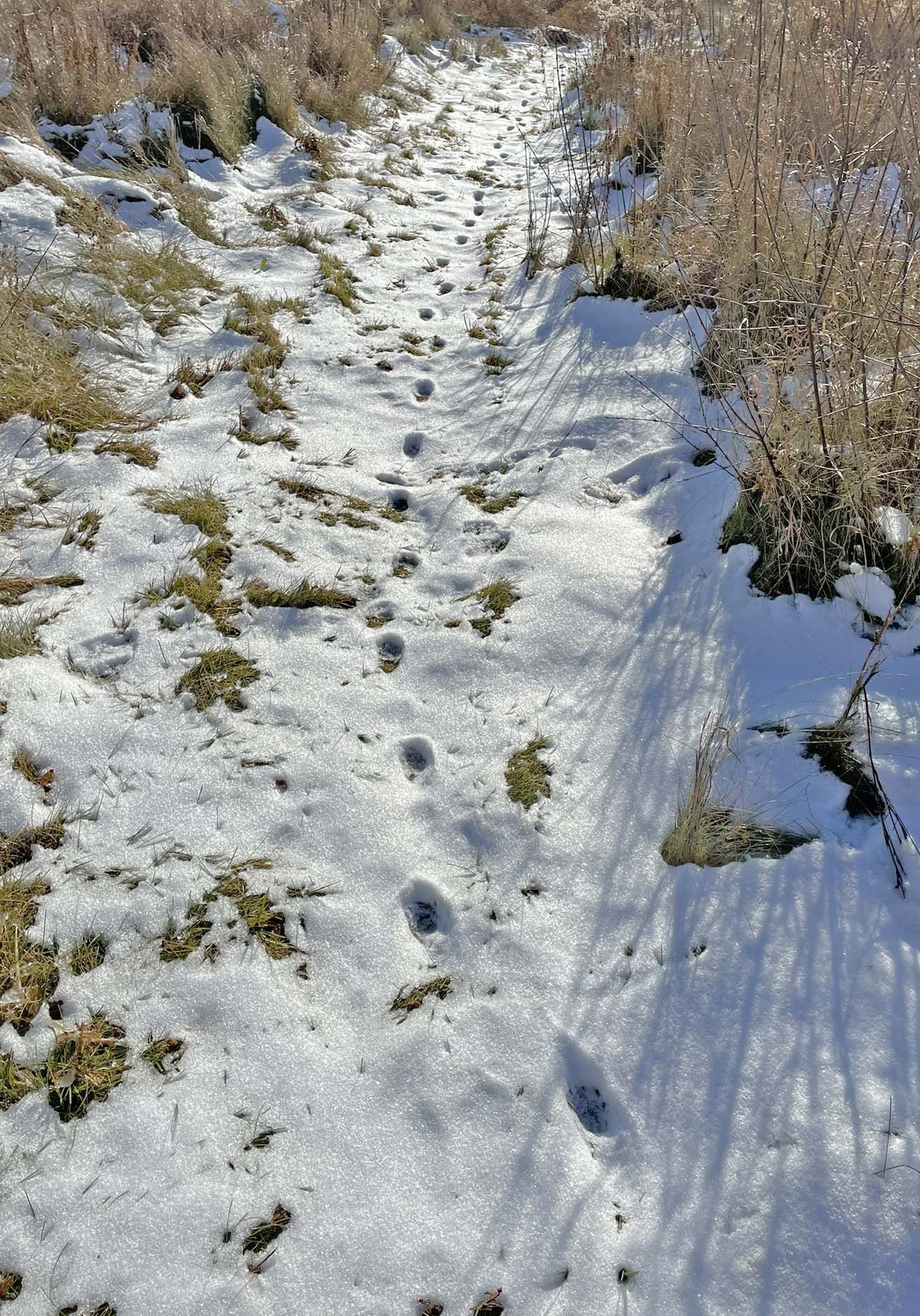 The Arboretum was quiet, but snow tells tales. Many bootprints, one set of ski tracks, lots of dogs. But there were also canid prints on paths where no human had walked :