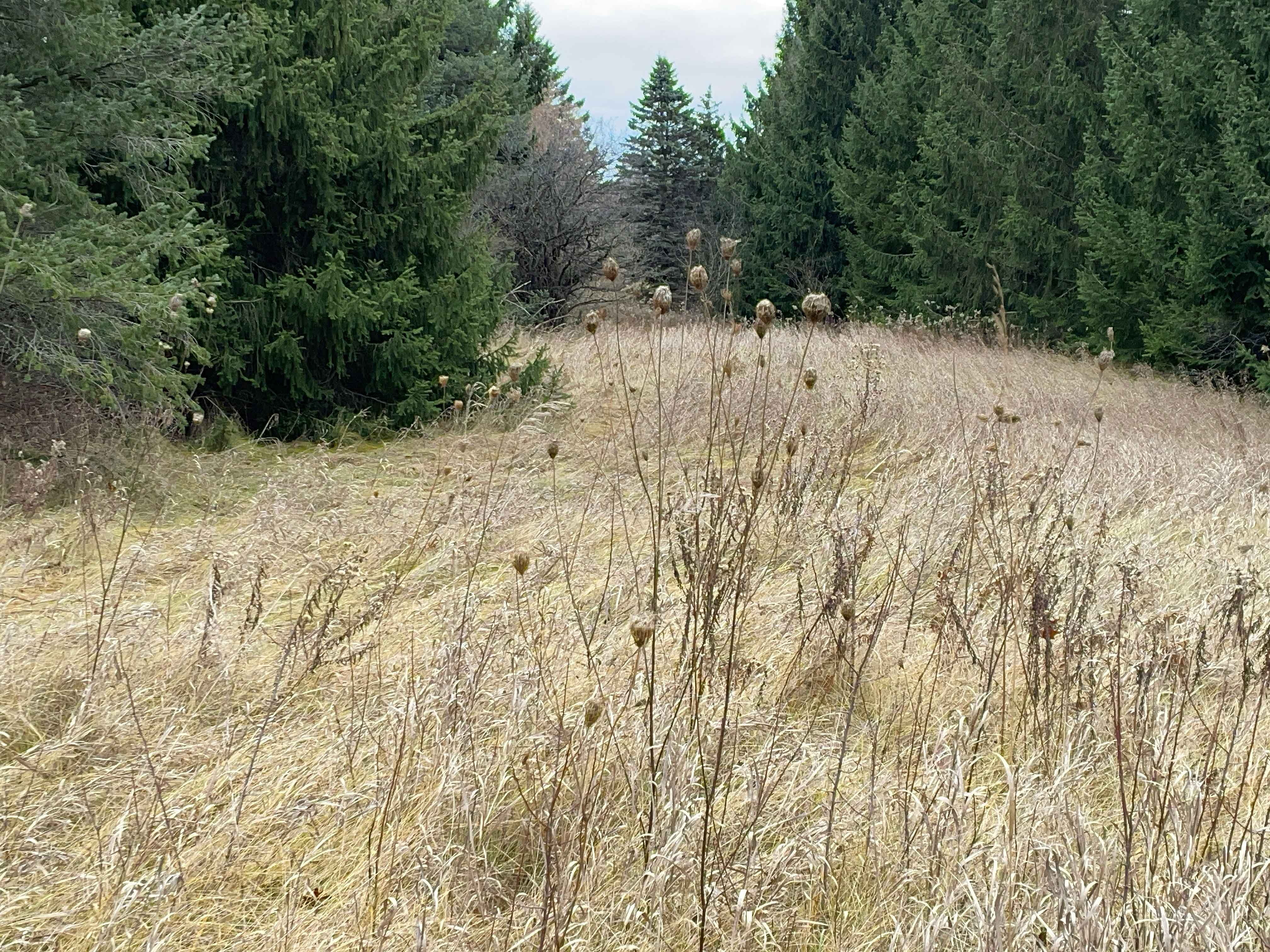 Neither flowers nor berries were needed to enhance this landscape: the diffuse light, the time of day, the copper and gold of goldenrod and grasses combined were enough. The field glowed.