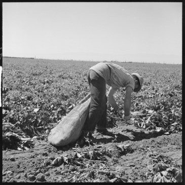 Photo:  Kern County, California. Migrant youth in potato field. Stoop labor by a migratory youth: by Partridge, Rondal, 1917-, Photographer (NARA record: 8464464) (U.S. National Archives and Records Administration) [Public domain], via Wikimedia Commons