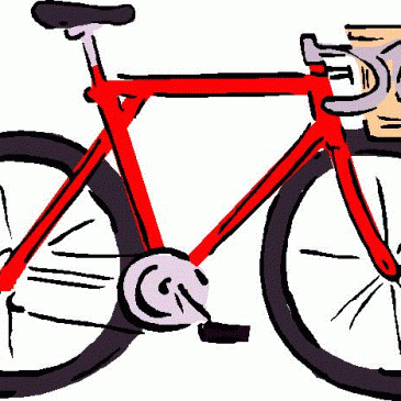 It’s taken me a couple of weeks to get my biking muscles up to speed, but for the last week or so I’ve been biking frequently. (The good weather helps, too.) I have a set of panniers that fit over my rear wheel, in which I can stuff my straw hat, a book, my laptop, shopping bags, water bottle, or whatever else I need to take, depending on my destination. My bike is a 21-speed ‘hybrid’: not quite a mountain bike, but sturdier and wider-tired than a road bike, with front shocks, perfect for the gravel trails as well as the roads.